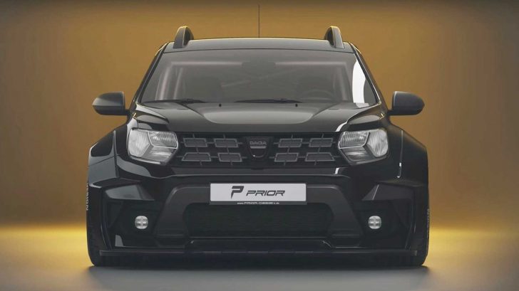 Nič z vymenovaných prvkov Dacia Duster nepotrebuje, aj napriek tomu ukázal úpravca Prior dizajn počítačový rendering extrémne upravenej Dacie Duster. Presne podľa receptu je ľudové SUV extrémne rozkopnuté a do rozšírených blatníkov putovali až 22 palcové disky kolies, externé chrómované prvky zmizli a do popredia sa tak dostala čierna farba. Vnútri sa rysuje ochranná klietka sedadlá nahradila štvorica športových škrupinových sedadiel. Výsledok je vskutku atraktívne pôsobiaca Dacia Duster, ktorú si zrejme nikto neobjedná. Pointou a hlavnými hodnotami je totiž nízka cena a veľmi dobrá prejazdnosť terénom v kombinácii s dobrou výbavou. A osobne si neviem predstaviť nikoho, kto tento celý koncept chcel za veľké peniaze postaviť naruby.